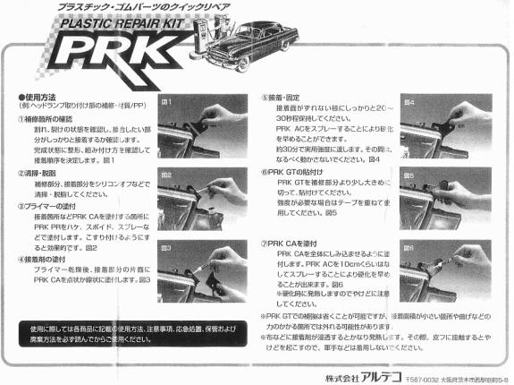 ●プラスチック・ゴム製品の接着、補強用接着剤を5g5本に小分け致しました。 ●PRK PRで前処理を行うことによりPP・FRP等の接着が可能 【用途】 プラスチック・ゴム部品の接着・補修 ■メーカー:アルテコ ■品名:プラスチックリペア剤(瞬間接着剤) ■品番:PRK-CA 主剤・瞬間接着剤:NET.5gx5本
