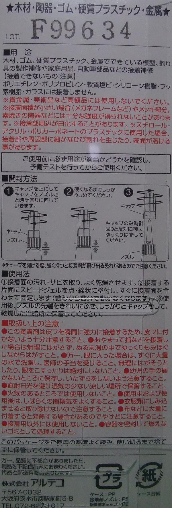 アルテコ製のアルテコ714は、木材・ゴム・硬質プラスチック・金属用のジェル状瞬間接着剤です。釣具の製作・修理や家庭用品・自動車部品などの接着補修に便利です。