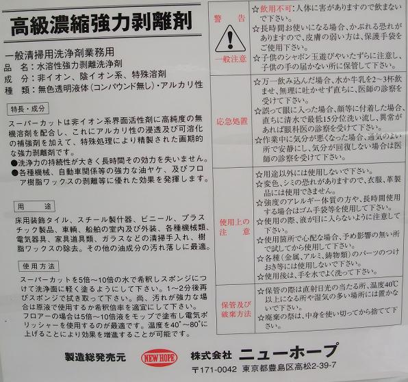 商品内容:業務用フロアークリーナー / 自動車整備工場用 / ガソリンスタンド用 / 機械工場用 / 床用洗剤 / 油ヤケ剥離剤 / フロアー樹脂ワックス剥離剤