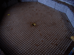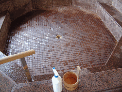 温泉に含まれる鉄分によって汚れた露天風呂 ![]() |