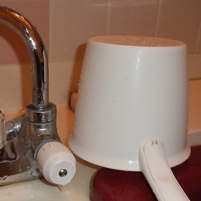 7:キレイに水洗いしたスポンジにバスタブバンを少量垂らし、湯垢の着いている場所を擦ります。