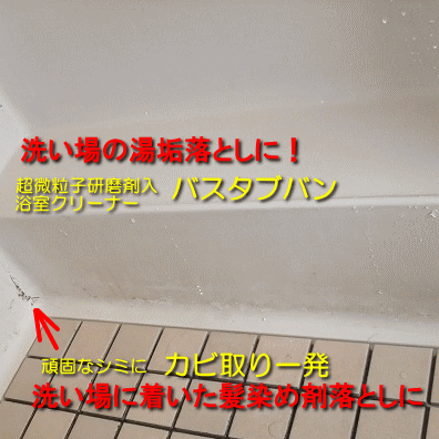 湯垢や汚れなど、カビ取り剤では取れない汚れを落とします。